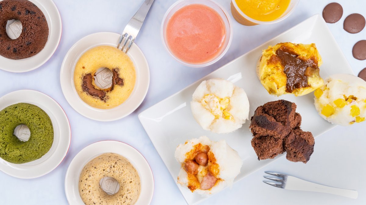 具沢山のもちもち蒸しぱんとケーキのような蒸しドーナツ生地の2種類を販売しております!どちらも米粉入りで食べ応え十分です🧁