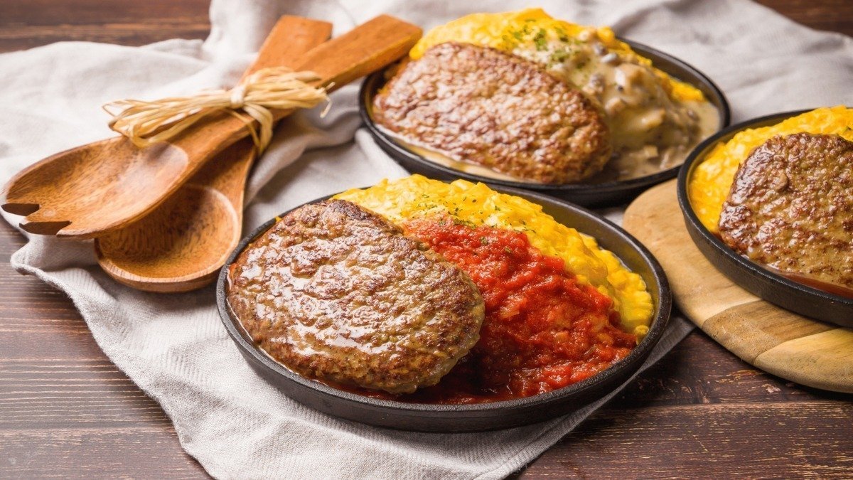 オムハンバーグのデリバリー専門店です。半熟卵のオムライスにハンバーグをトッピングした幅広い年齢層の方に支持されているメニューです🥄