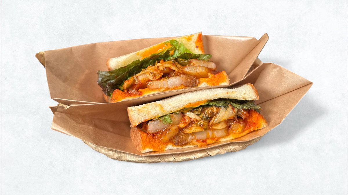 群馬県産もち豚の自家製ベーコンの豚キムチサンド/ Pork kimchi sandwich with homemade bacon made with Gunma Prefecture's sticky pork