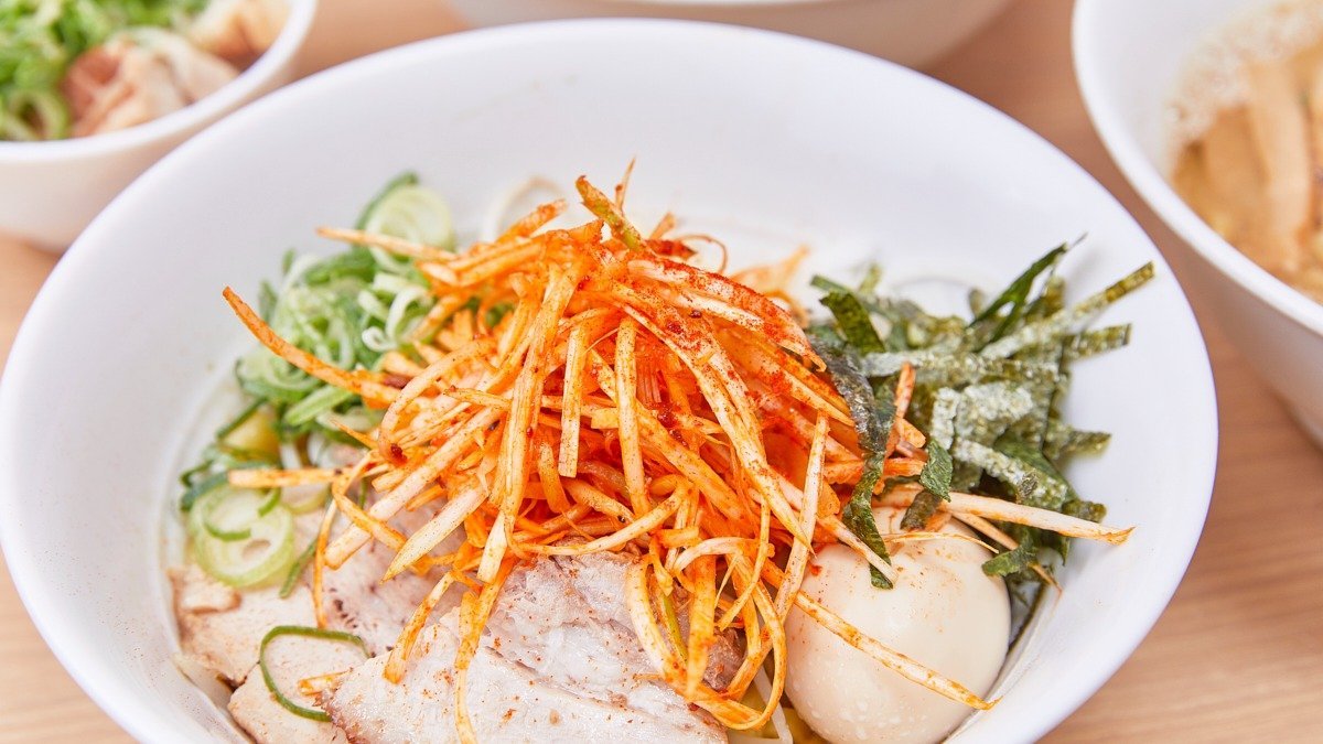 三日間熟成させたスープに豚ガラ、ゲンコツ、野菜を入れたこだわりのスープが自慢です。もちろんチャーシューや麺にもこだわっています🍜 まぜそばは、200gまで無料! 3種類の違う太さの麺を混ぜ合わせた「乱切り麺」を使用。自家製混ぜダレに絡み、最後まで不思議な食感が味わえます🥢