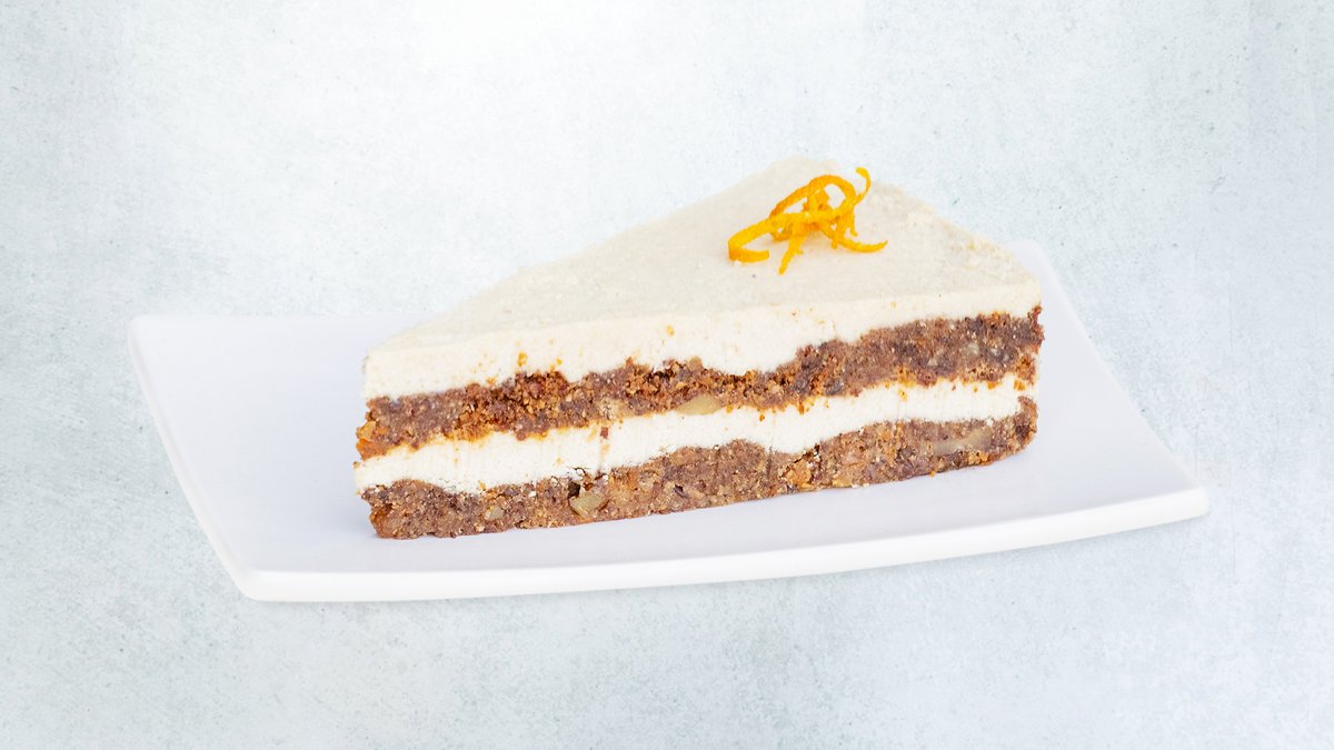 人参、くるみ、アーモンドやスパイスを加えた生地に、カシューナッツクリームを合わせたキャロットケーキです。アレルギー:くるみ、アーモンド、カシューナッツが入っています。