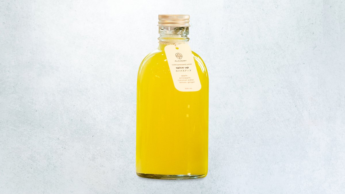 ココナッツウォーター、パイナップル、リンゴ、ショウガ、レモンを使用しています。