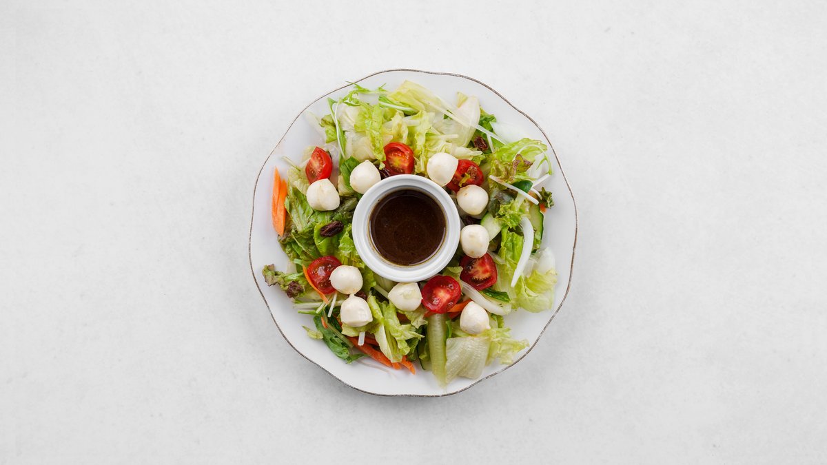 モッツァレラチーズと新鮮な野菜がたっぷりのサラダ。