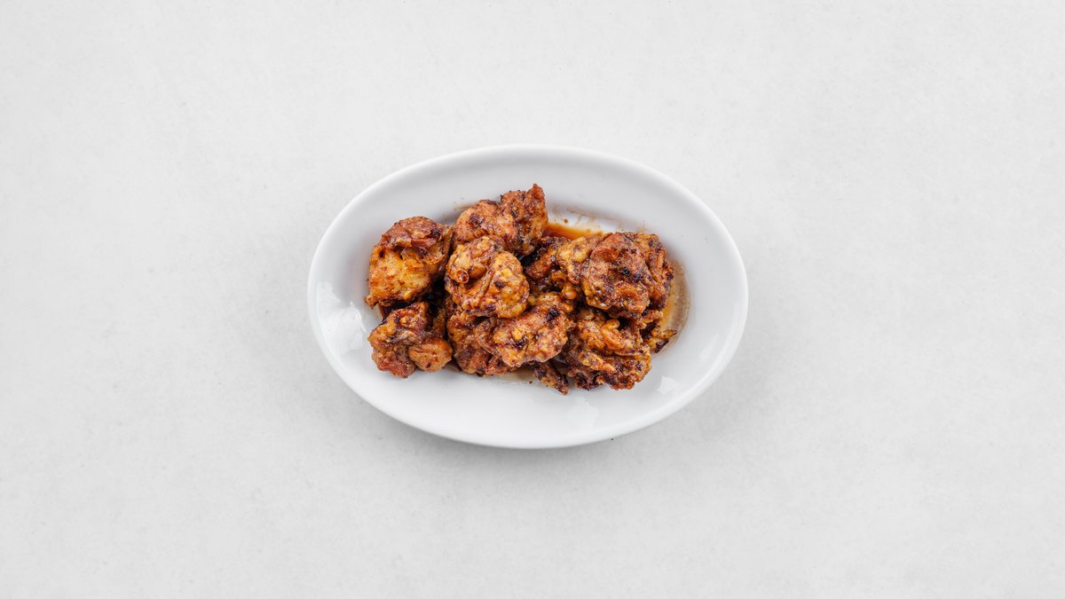 香ばしい醤油ベースのタレを絡めた骨なしチキン。しっかりとした味付けで、ご飯のおかずやおつまみにもぴったり。