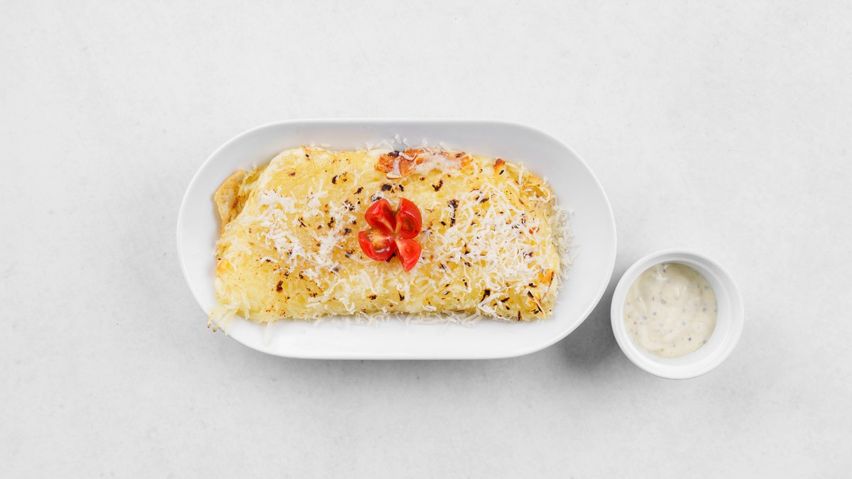 たっぷりのチーズがトッピングされ、ボリューム満点の一皿。
