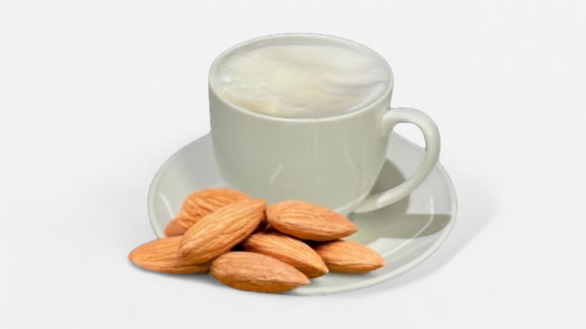 アーモンドシロップを使用したラテ。アーモンドの香りと甘みが最高のドリンク。リラックスタイムにおすすめの一杯です。