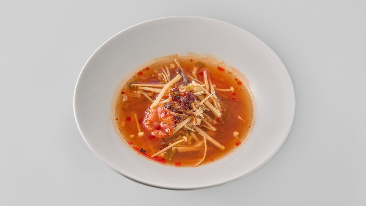 トマトの甘みと酸味がを活かした、体の芯から温まる一杯。 すっぱ辛いスープが食欲を増進してくれます。 元気を出したい時におすすめの一杯。