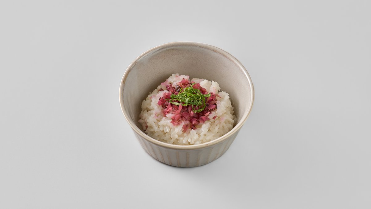 カリカリとした食感が楽しい、梅の風味が爽やかなご飯。 酸味と塩味のバランスが絶妙で、食欲がない時にもさっぱりと美味しくいただけます。