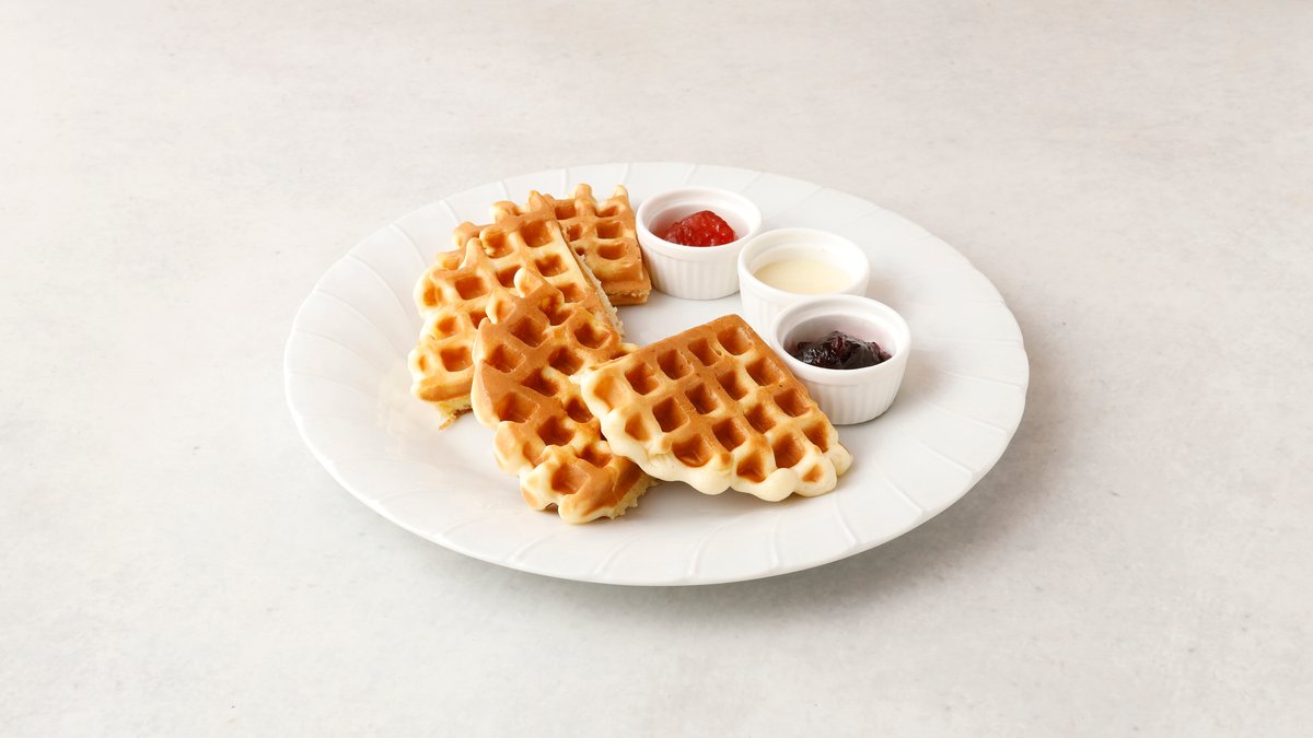 外はカリッと、中はふんわりと焼き上げたワッフル。シンプルな味わいで、トッピングを自由に楽しめます。