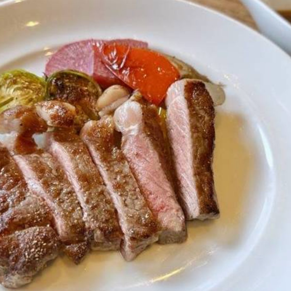 US産ビーフサーロインを使用し、旬の野菜を添えています。お好みのソースをお選びいただけます。