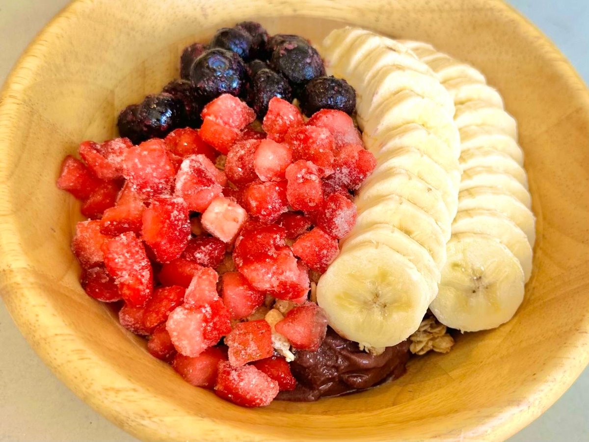 アサイー、イチゴ、バナナ、リンゴジュース。