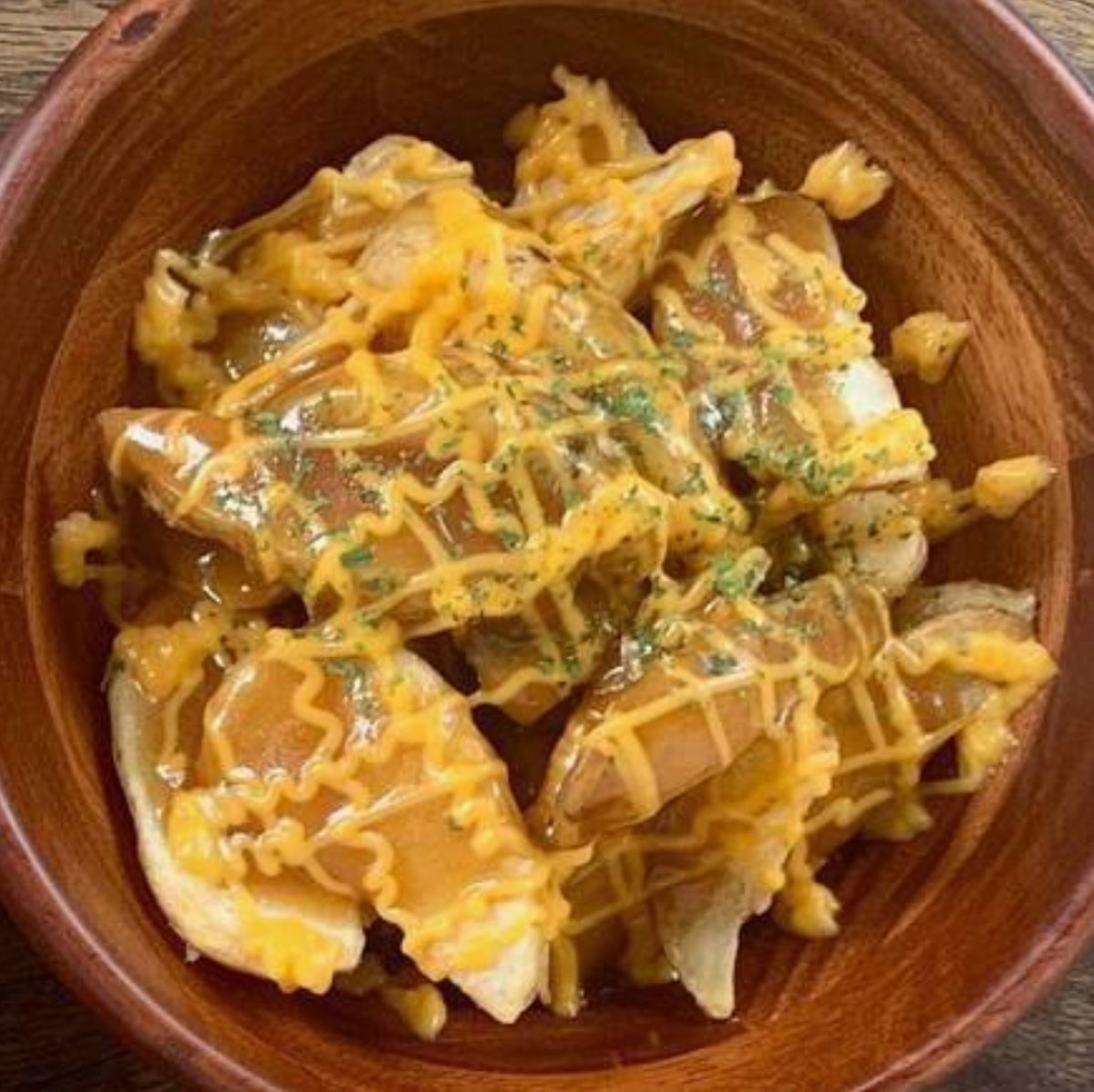 皮つきポテトにグレイビーソースとチェダーチーズを上からかけたベイクドポテトです。