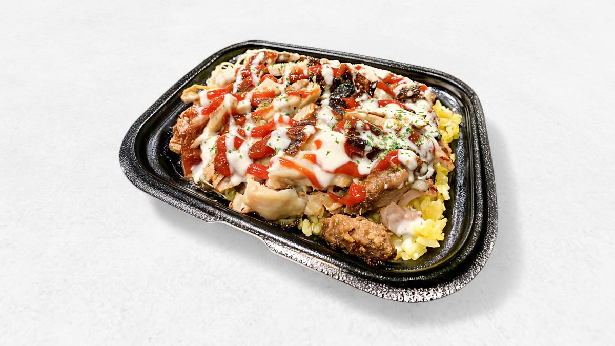 ジューシーなグリルチキンをスパイス香るソースとともにライスの上にたっぷりトッピングしました。ボリューム満点で満足感のある一品です。