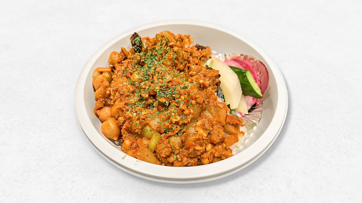 スパイシーなチリビーンズとライスを組み合わせた、クセになる味わいのメニューです。お肉の旨みと豆の食感が絶妙なハーモニーを奏でます。