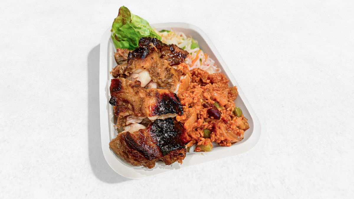食べやすいハーフサイズのジャークチキンに、ピリ辛のチリビーンズライスを添えたワンプレートです。少しずついろいろ楽しみたい方におすすめです。