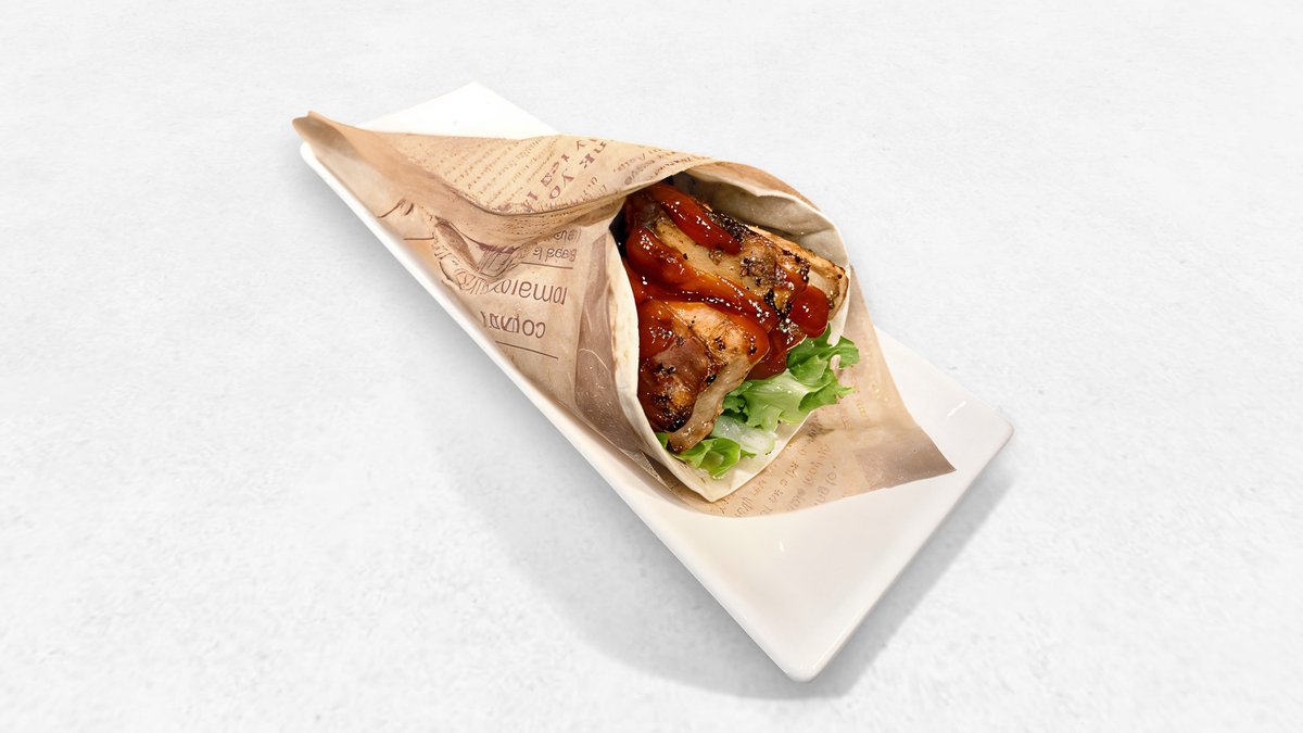 サクサクに仕上げたジャークチキンを野菜と一緒にラップで包みました。軽やかな食感とスパイシーな風味が魅力です。