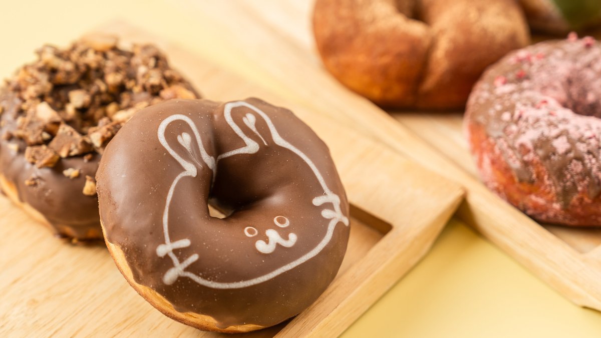 プレーン、シナモン、プレーンチョコレート、三種類のナッツとヘーゼルナッツクリームのセットです。 (夏季のプレーンチョコレートは生地にフランス産のチョコレートを埋め込んだものになります)