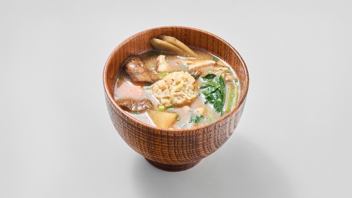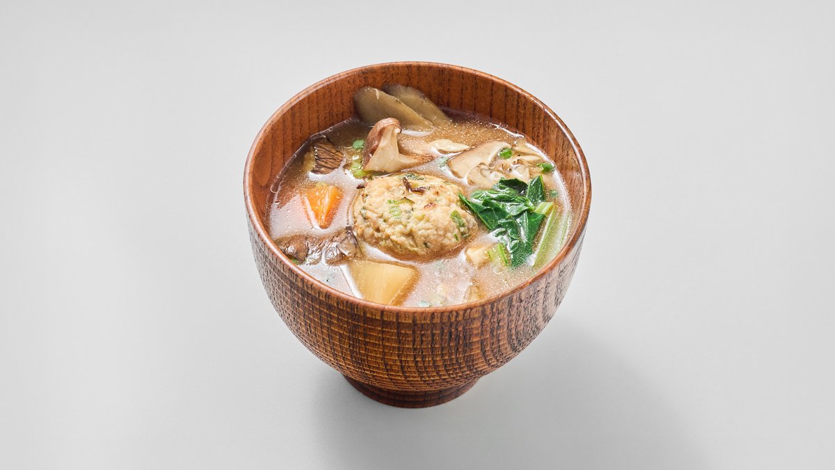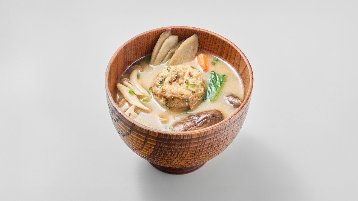 店主が健康診断をきっかけに、ご自身の健康の為に始めた当店のお味噌汁🥢 野菜・きのこ類・海藻類をバランス良く使い栄養満点です◎ ふっくらとした鶏団子が入ったお味噌汁です。心温まる一杯をお楽しみください。