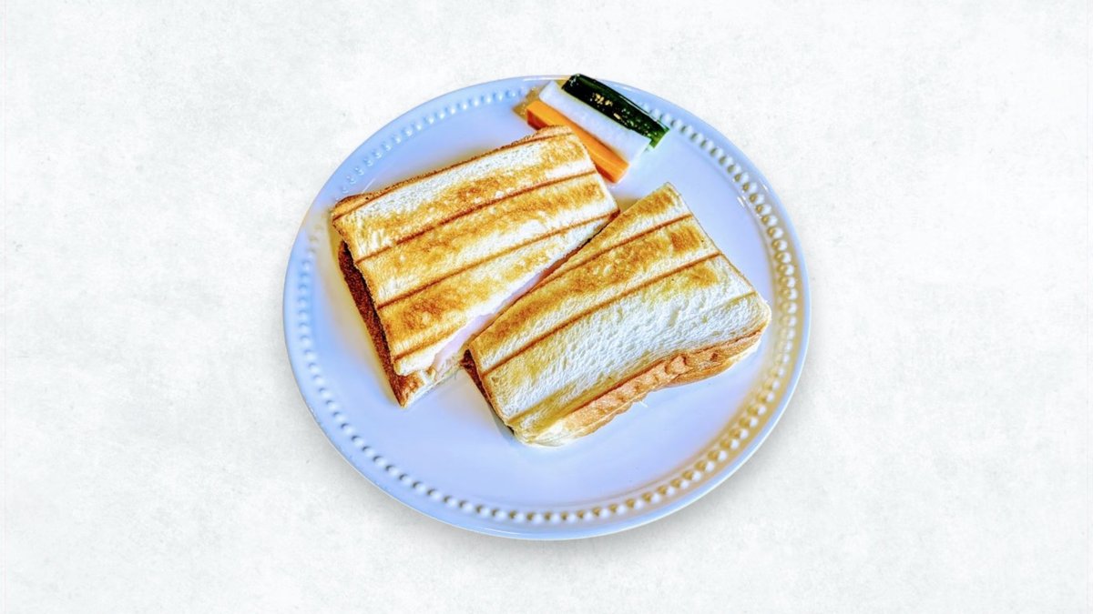 ハムとチーズが入ったホットサンドです。