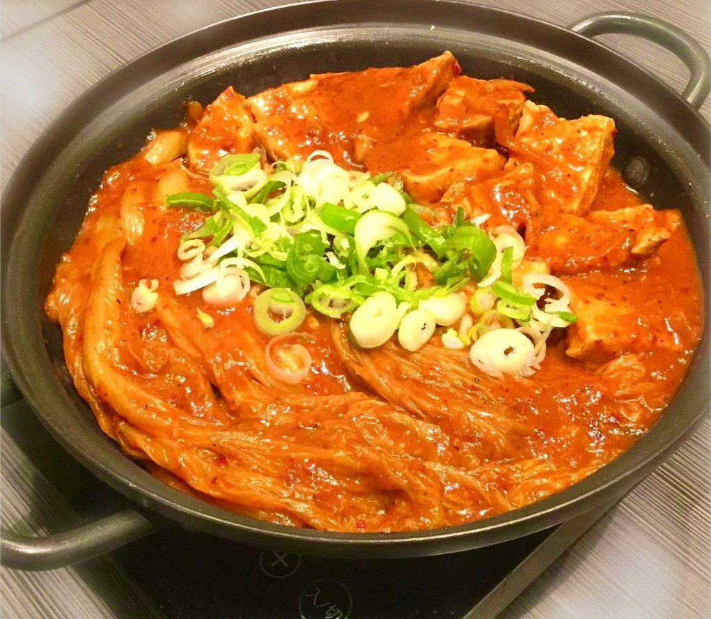 えびとあさりがたっぷり!ひき肉、玉ねぎ入り やさしい豆腐にとろ〜り卵がマッチした定番スンドゥブ チーズトッピングもおすすめ!