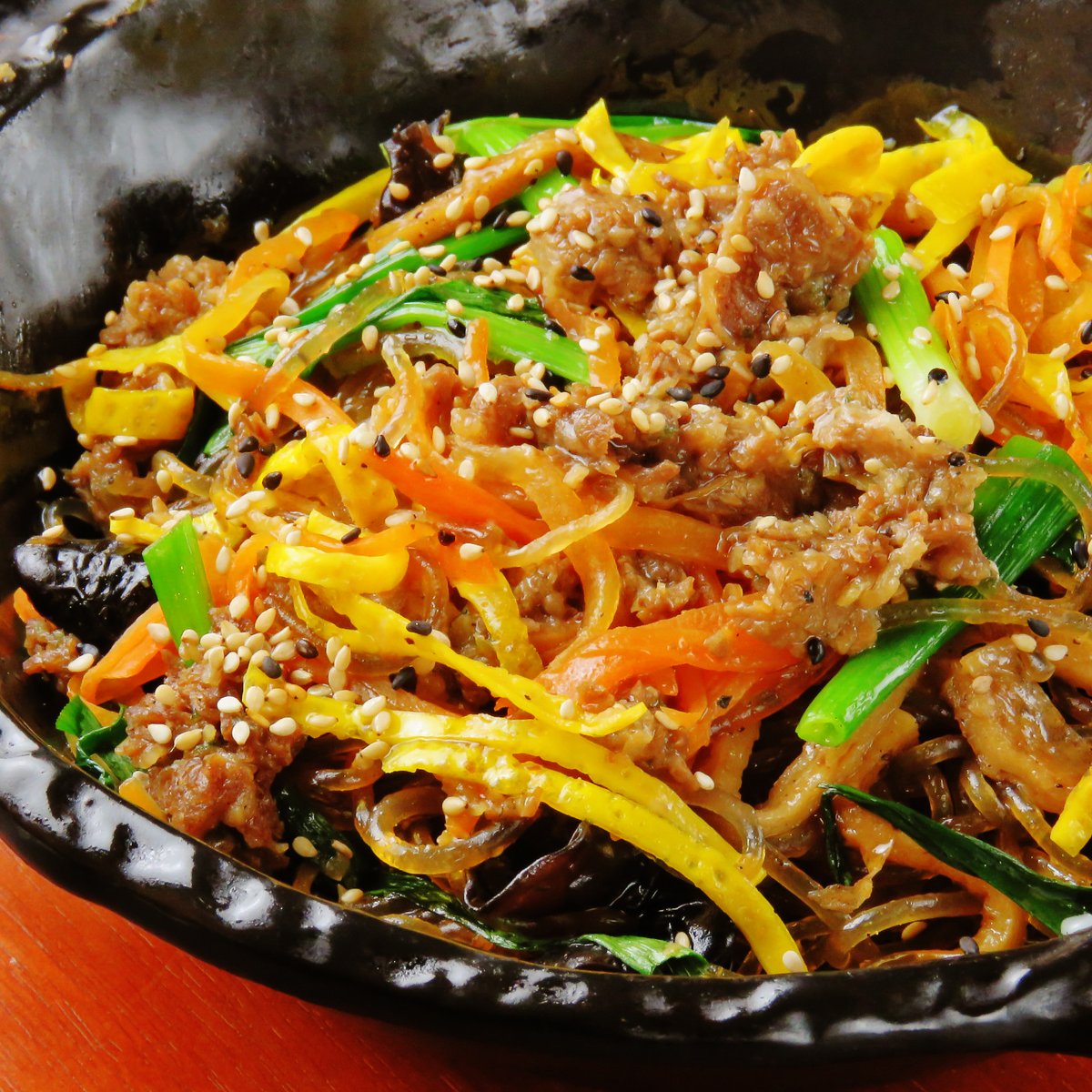 ぷるぷる韓国春雨に、牛肉、野菜、きくらげを甘辛く炒めた韓国料理。 おもてなしによく振る舞われます。