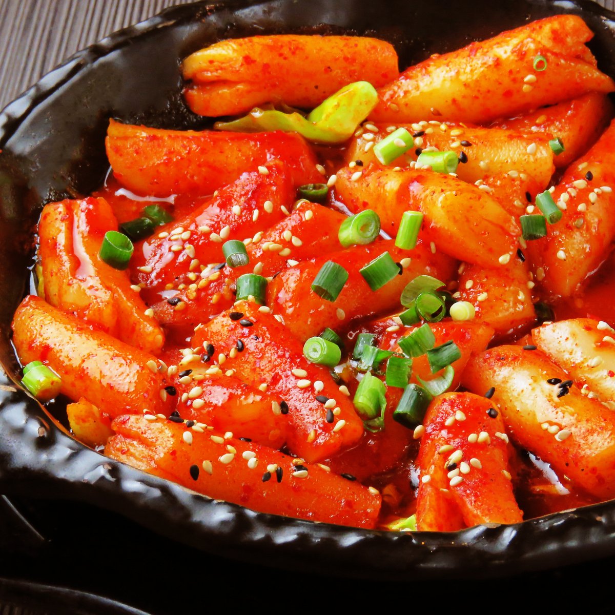 旨辛っっ!! うるち米で作った韓国のお餅をHANOK自家製ヤンニョムで味付け!Pizzaのような美味しさの2種チーズトッピングもおすすめ!
