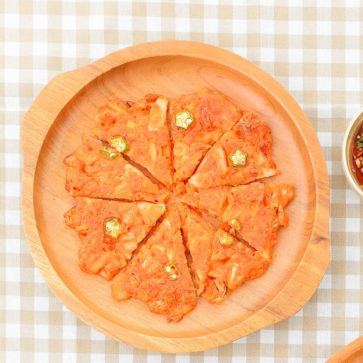 エビ、あさり、イカがたっぷり海鮮チヂミ、冷めてもカリッとおいしい。Pizzaのような美味しさの2種チーズトッピングもおすすめ!