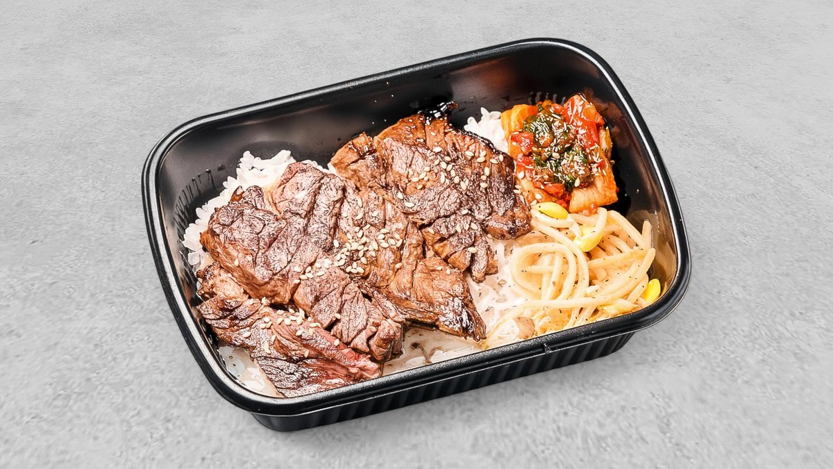 ボリューム満点のアメリカ産牛カルビ弁当。たっぷりの牛肉と彩り豊かな副菜で、お腹も心も満足。