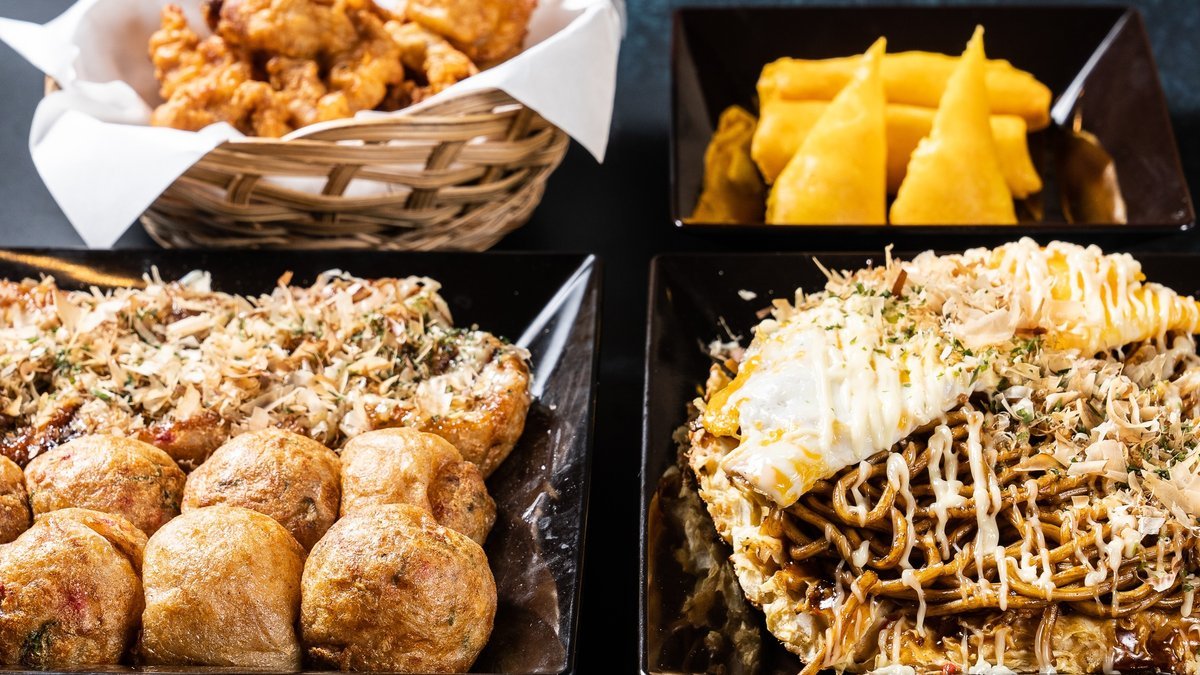 ダシの香りあふれるふわとろ食感のたこ焼きです🐙お好み焼きと焼きそばもご用意しております!大阪のソウルフードを一気にお楽しみいただけます。