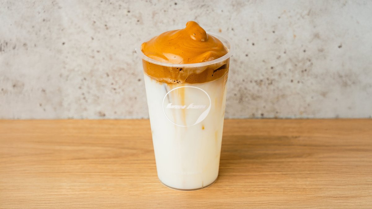 香港系ミルクティーな味ベ-スはアッサムブラックティー・上はダルゴナコ-ヒ-フォームです。ミルクティーとカフェラテの味両方楽しめます。ホットはMサイズのみです。タピオカは含まれておりませんお好きみでトッピングをご利用ください。