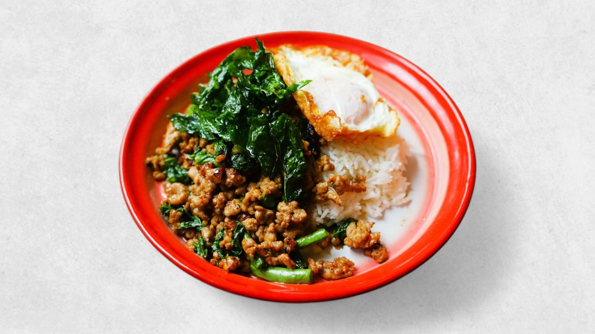 タイフードの中でも抜群の知名度と人気を誇るガパオライス。 豚ひき肉に唐辛子の辛さとニンニク、タイバジルの香りでご飯が止まらない! 半熟目玉焼きを絡めてどうぞ。