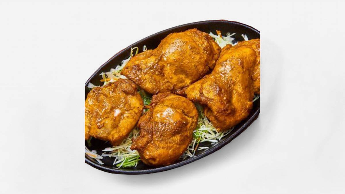 ヨーグルトとスパイスに漬け込んだ鶏肉を窯で焼き上げました。スパイシーな風味が食欲をそそります。/Chicken soaked in yogurt and spices was baked in a kiln. The spicy flavor is appetizing.
