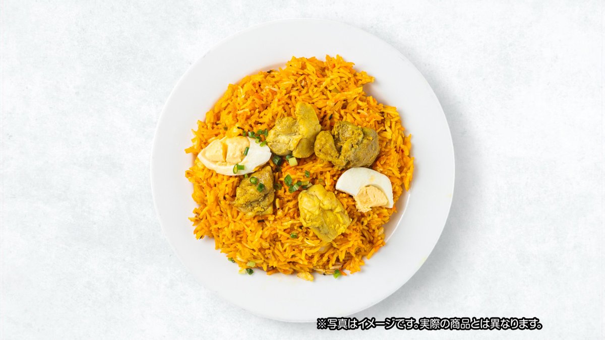 チキンビリヤニでは1品に付き、チキン200g使用しています。辛さは中辛おすすめです。本場インドの味です。