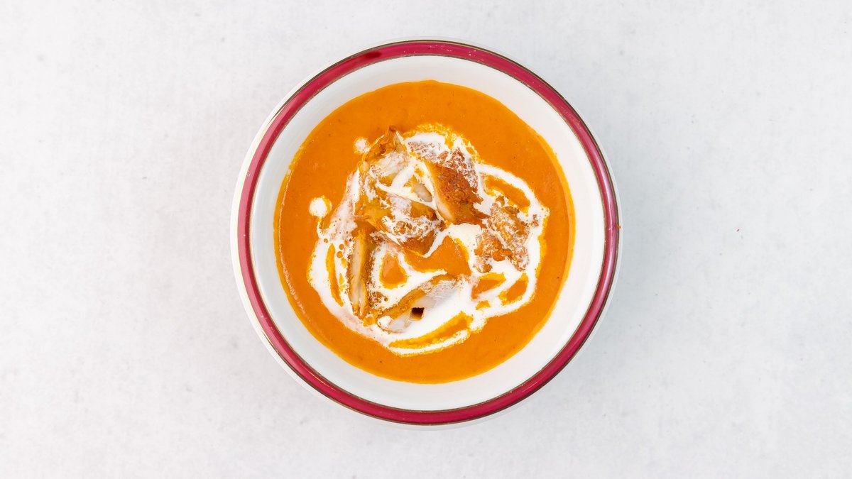 トマトとクリームをベースにした、インド料理「チキンティッカ」入りのカレーです。/ A curry based on tomato and cream. Contains Indian food "Chicken Tikka"!