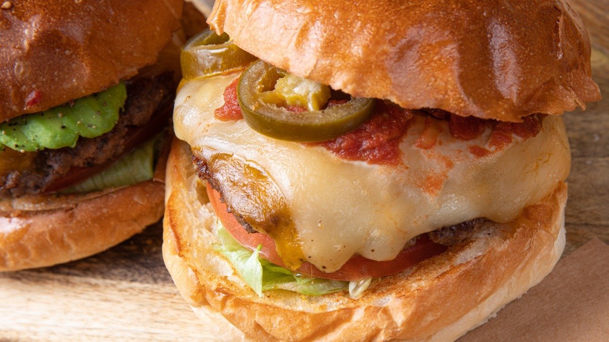 カリッと焼いたバンズにジューシーなビーフ100%パティ、アボカドと濃厚チェダーチーズをサンドしたアボカドチーズバーガーが当店の人気No.1商品です。ぜひ一度ご賞味ください🍔