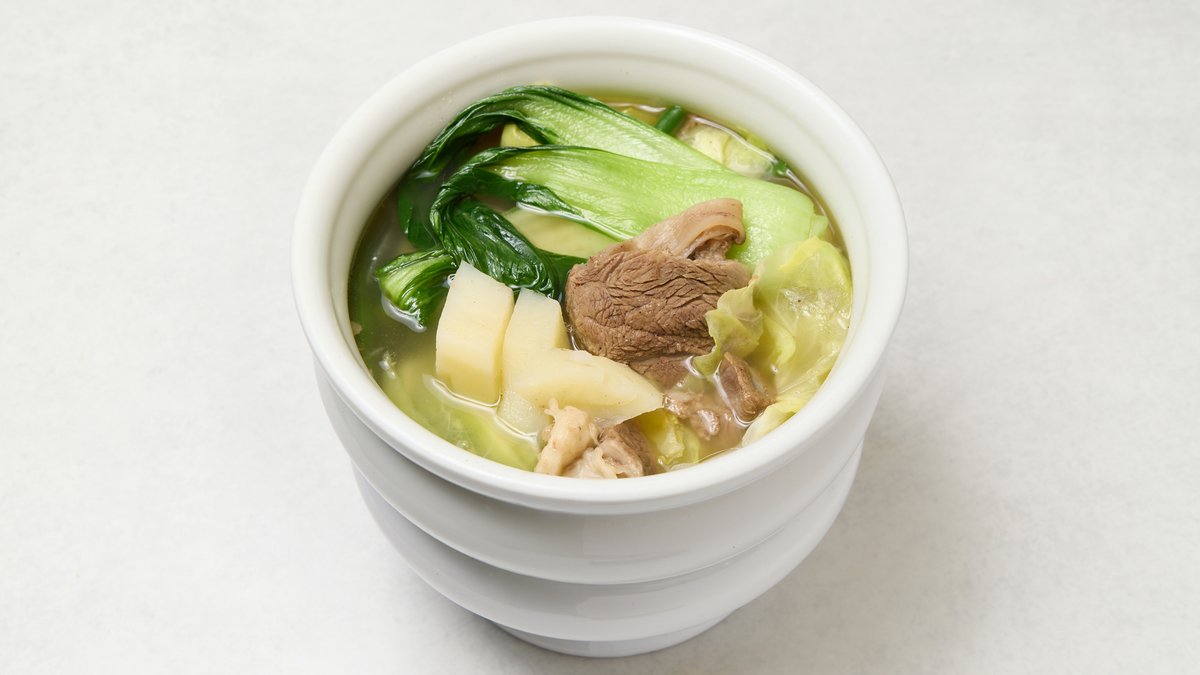 柔らかく煮込んだ牛肉と野菜の優しいスープです。