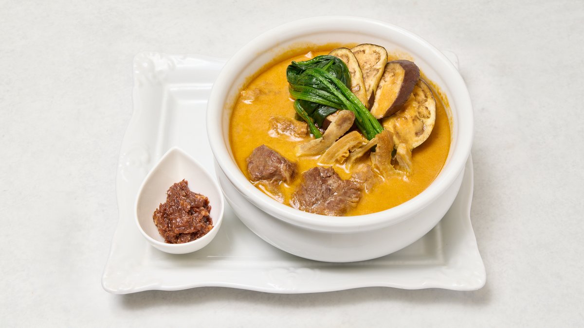 ピーナッツソースが特徴の牛すじと野菜のシチューです。