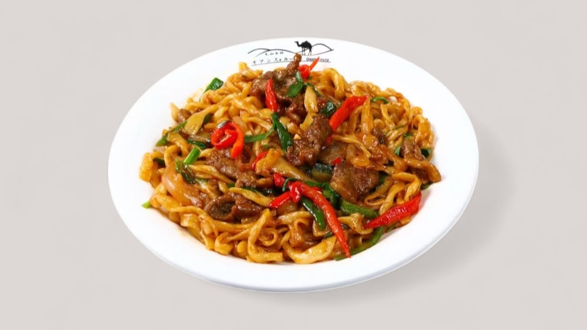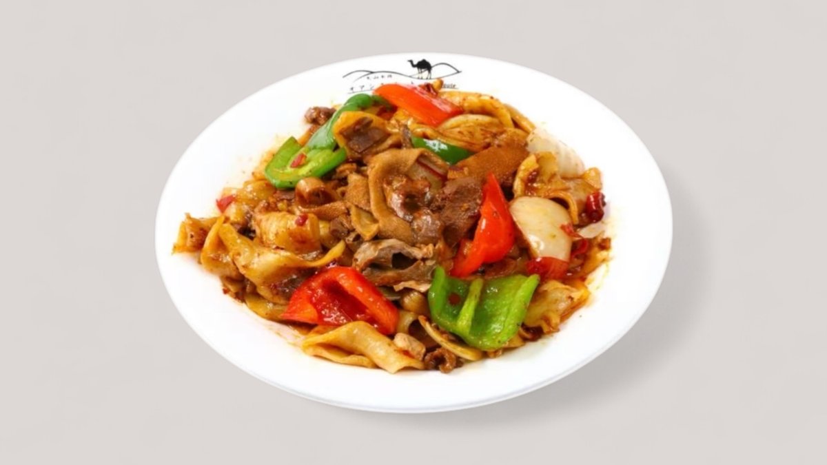 中国新疆ウイグル自治区の伝統的な料理です。この料理は、米粉を炒めて具材と一緒に調理されます。一般的な具材には、牛肉、ピーマン、玉ねぎ、セロリ、香辛料などが使用されます。