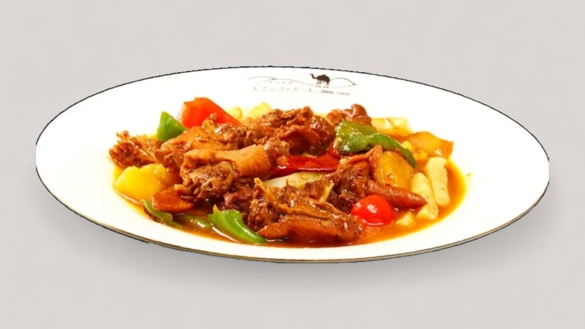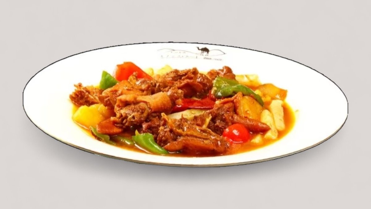 新疆地方の伝統的な鶏肉料理です。スパイシーな味付けが特徴です。