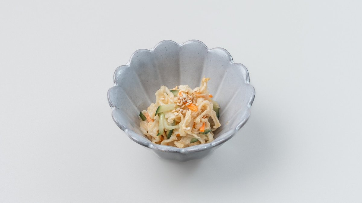 梅の酸味とマヨネーズのコクが絶妙にマッチ。さっぱりと召し上がれる創作和え物です。