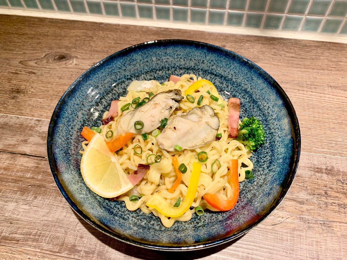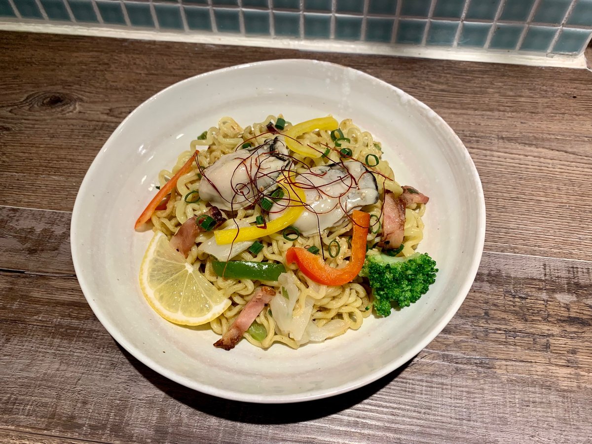 牡蠣の出汁を活かした特製ねぎ塩だれの焼きそばです