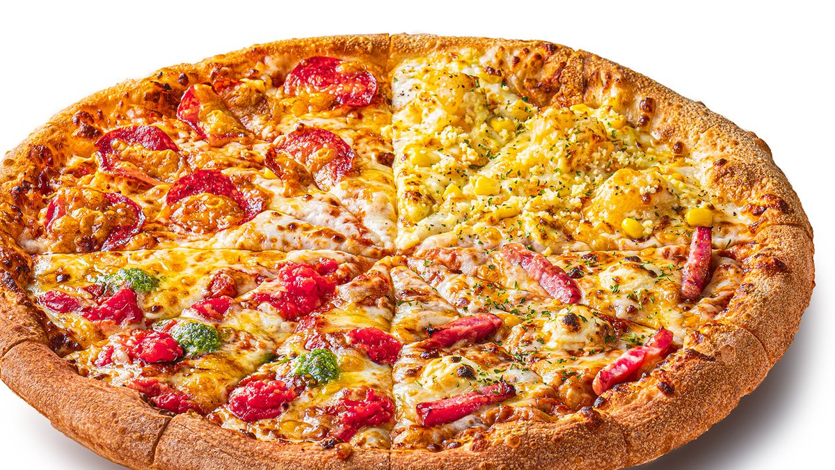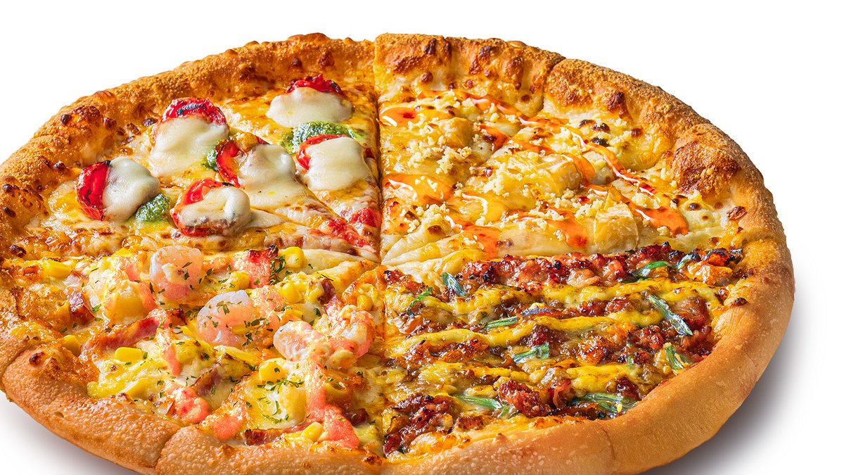 <組合せ> 「アスパラベーコーン」「ペパロニクラシック」「プルコギグラタンピザ」「チキンとマッシュルームのグラタンピザ」