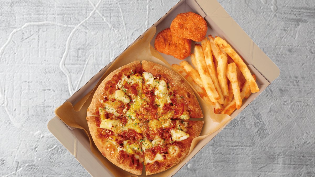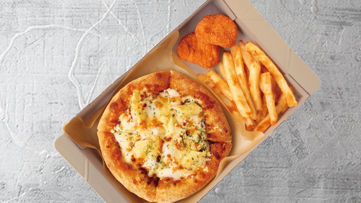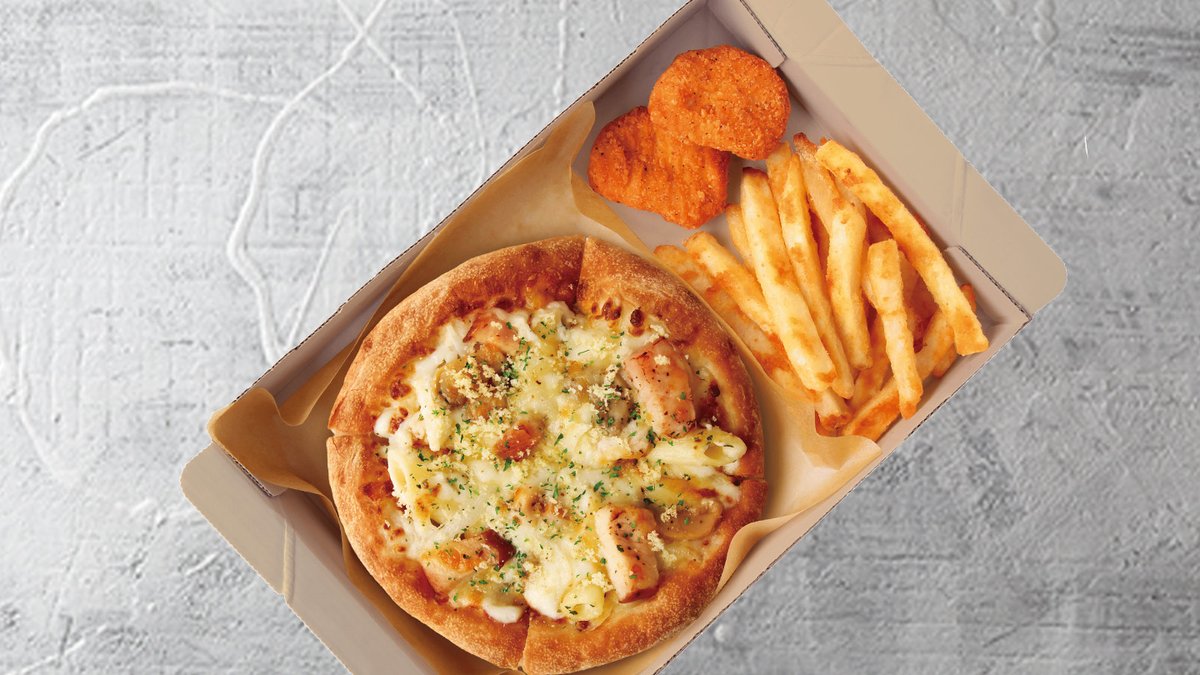 <組合せ> [Pサイズ(約15cm)]ミルキーグラタンピザ」+[ハットフライポテト]+[チキンナゲット2ピース] (ピザのトッピング:ペンネホワイトソース/パルメザンチーズ/パセリ)