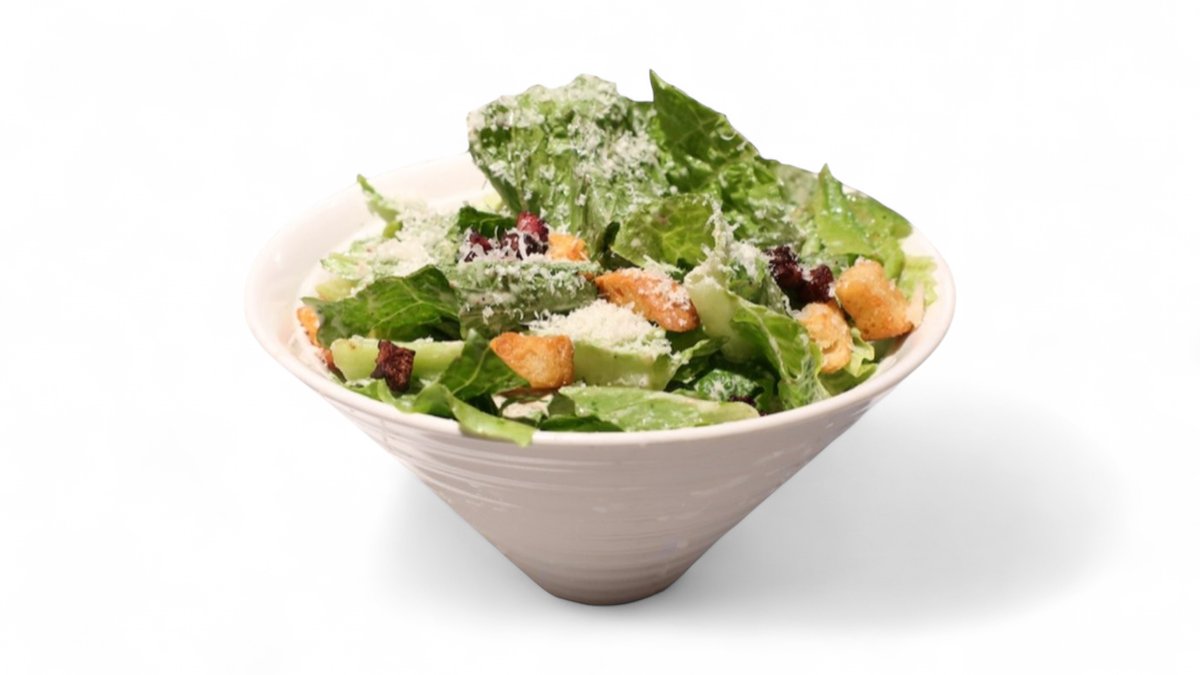 激ウマ角切りベーコンがトッピングされたオリジナルシーザーサラダ。ベーコンってこんなにジューシーだったっけ?!