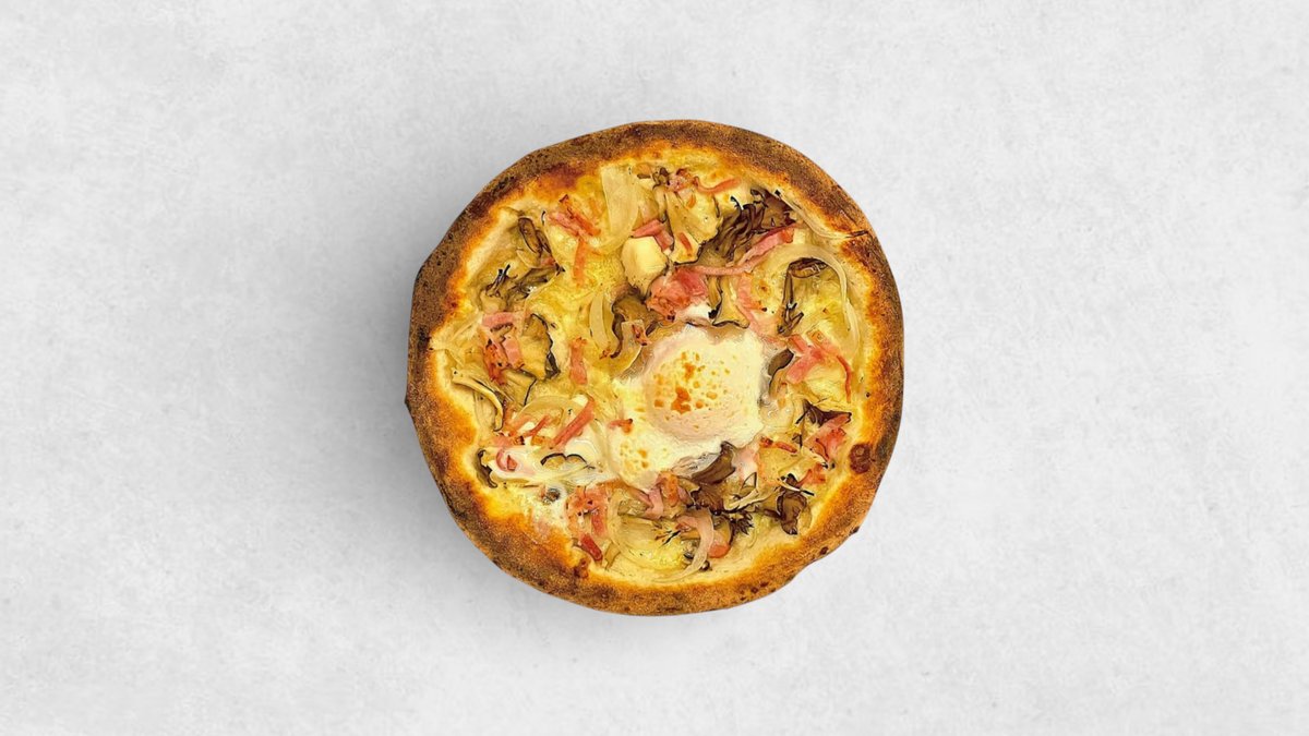 (ソルト、 モッツァレラ、 オニオン、 マイタケ、 ベーコン、 エッグ、 パルメザン、Salt, Mozzarella, Onion, Mushroom, Bacon, Egg, Parmesan)