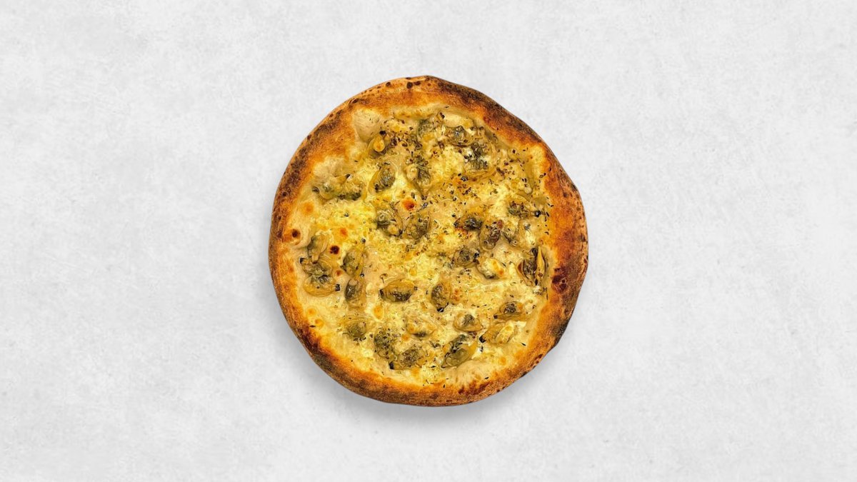 (アサリの白ワイン煮、 モッツァレラ、 オレガノ、 パルメザン、Clams stewed in white wine, Mozzarella, Oregano, Parmesan)