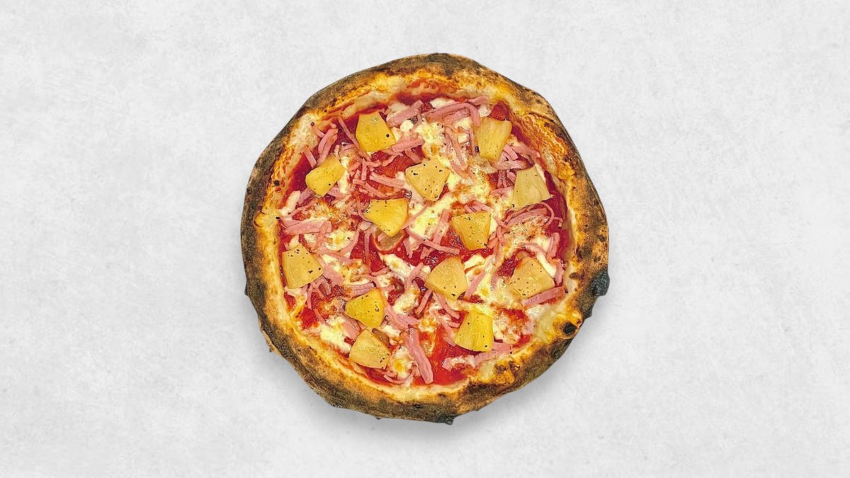 (トマトソース、 モッツァレラ、 パイナップル、 ロースハム、 パルメザン、Tomato Sauce, Mozzarella, Painapple, Ham, Parmesan)