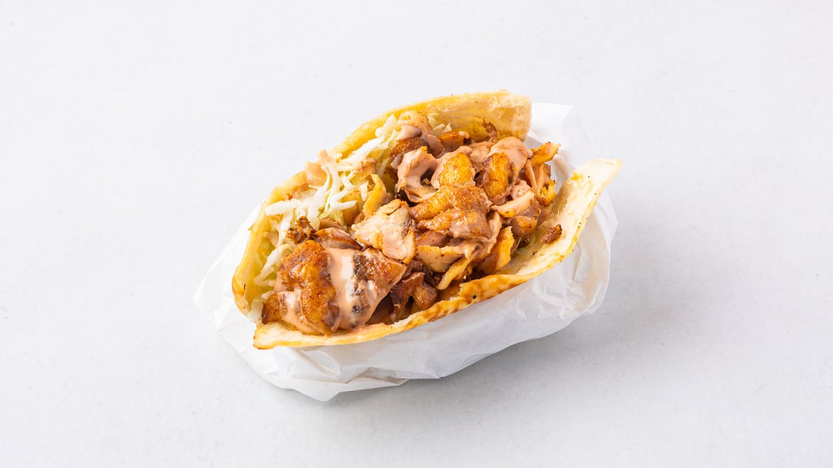 特製スパイスのお肉と新鮮な野菜をトルティーヤで巻きました。食べやすく、ランチや軽食におすすめです。