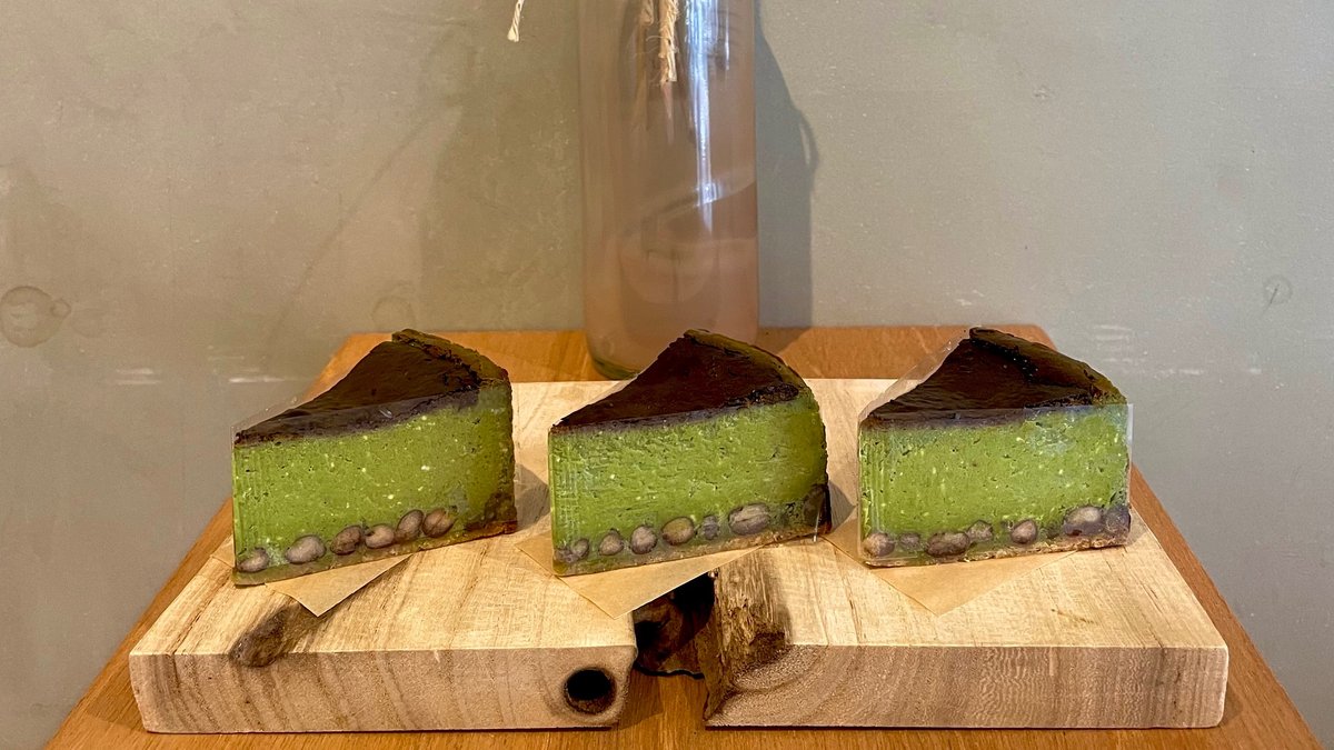福岡県八女市の高級抹茶を使用し、ベースに小豆をひいた贅沢なバスクチーズケーキです🍰お味も和風な仕上がりです🍵 ※保存料、着色料を使用していないため変色する場合がありますが品質に問題ありません