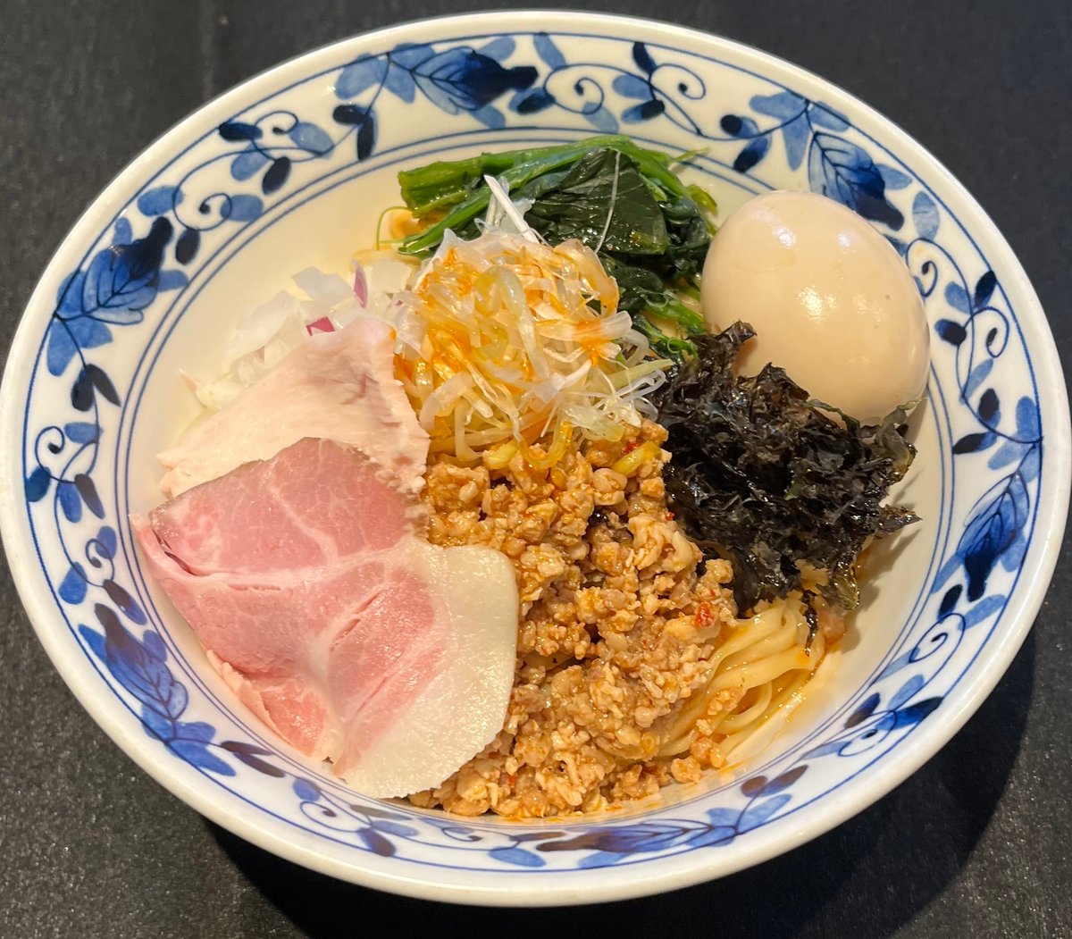 当店自慢の「貝油」で頂くまぜそばです。 後引く辛さがクセになります。特製トッピングで大満足の一品です。